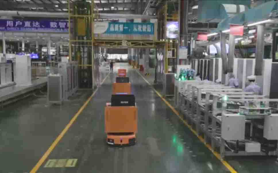 为车载冰箱物流配送打造的智能解决方案,,包含产中物流通过潜伏举升AMR搬运至线边,,产后成品物流智能仓储,,流程包含产中物流智能齐套入库,,,,线边安灯叫料AMR智能配送至线边,,,,成品入库、、、出库,,,通过无人堆高车机器人,,,,智能仓储管理替代人工作业管理,,,,实现更高存储、、、更高效率、、、更具柔性化的解决方案。。。